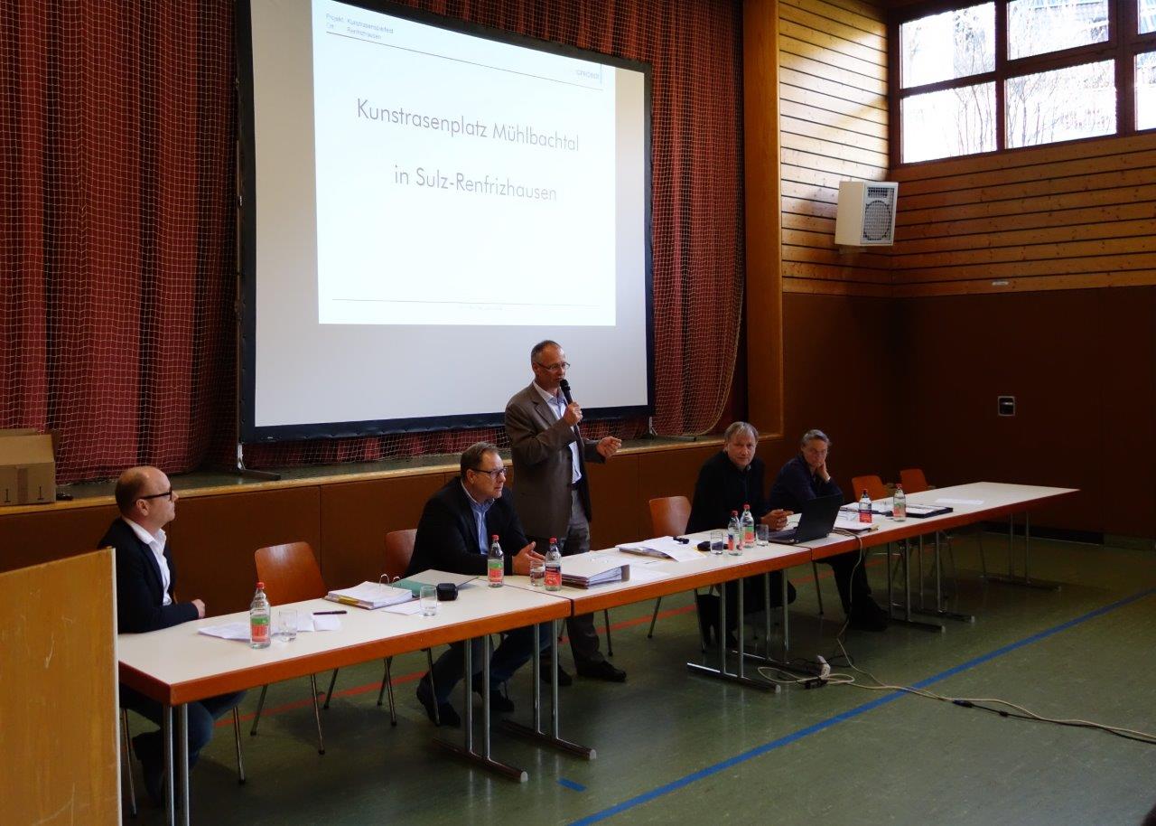Um einen vollwertigen Kunstrasenplatz in regulärer Größe zu bauen, gab es noch eine weitere Option: Der brach liegende Sportplatz in Renfrizhausen. So wurde der Bau eines neuen Kunstrasenplatzes als Gemeinschaftsprojekt mit der Stadt Sulz sowie den drei weiteren Vereinen FC Holzhausen, SG Mühlheim-Renfrizhausen sowie dem VfB Sigmarswangen ins Auge gefasst. Nach dem der Sulzer Gemeinderat für das Projekt gestimmt hat und Anfang 2017 Fördermittel des Bundes für dieses Projekt zugesagt wurden, konnte das Projekt in Angriff genommen werden. Am 11. September 2018 folgte der Spatenstich des neuen Platzes in Renfrizhausen. Nach einem knappen Jahr Bauzeit kam es am 31. Juli 2019 zur Schlüsselübergabe des fertig gestellten Kunstrasenplatzes. Die Namensrechte des neuen Sportplatzes gingen an den Sponsor Karl Hauser aus Renfrizhausen. Am 13. September wurde der Platz gebührend eingeweiht.